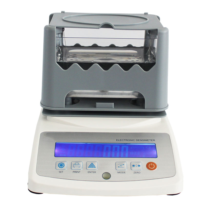 電子比重計是將現代微電子技術與阿基米德原理相結合而研發出來的新型比重測試儀器 此儀器改變了傳統密度測試的繁瑣操作,實現了不規則樣品的快速準確測量。能滿足現代產品生產及新材料研究過程中對樣品密度的精確測量要求